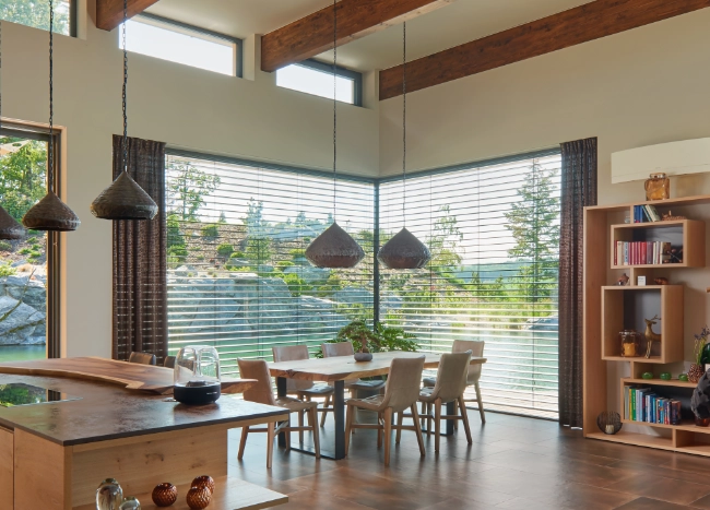 A sarokablakok nagy népszerüségnek örvendenek manapság. Megvilágítják a helyiséget, és nagyszerű kilátást nyújtanak. A NEVA® zsaluziák könnyedén telepíthetők pozitív vagy negatív sarokablakok esetében is. A NEVA® zsaluziák sarokmegoldásának másik előnye a mennyezet-aljzat rögzítési lehetőség. Garantálja a sarokablakok hatékony árnyékolását és nem utolsó sorban az esztétikai elvárásoknak is megfelel.